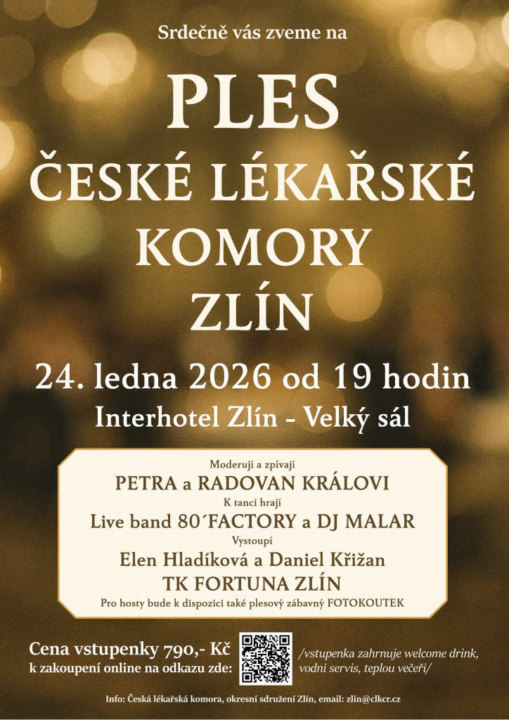 PLES ČESKÉ LÉKAŘSKÉ KOMORY ZLÍN, 24. ledna 2026 od 19 hodin ve Velkém sálu Interhotelu Zlín